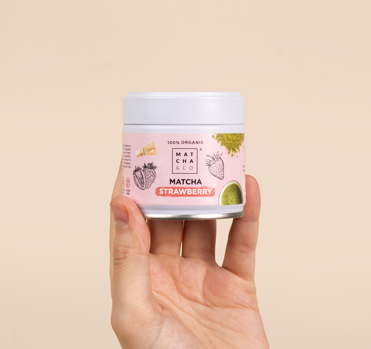 Té verde en polvo con fresa · 100% Ecológico