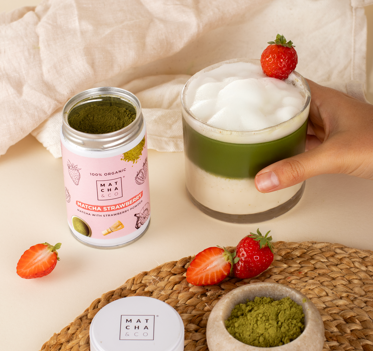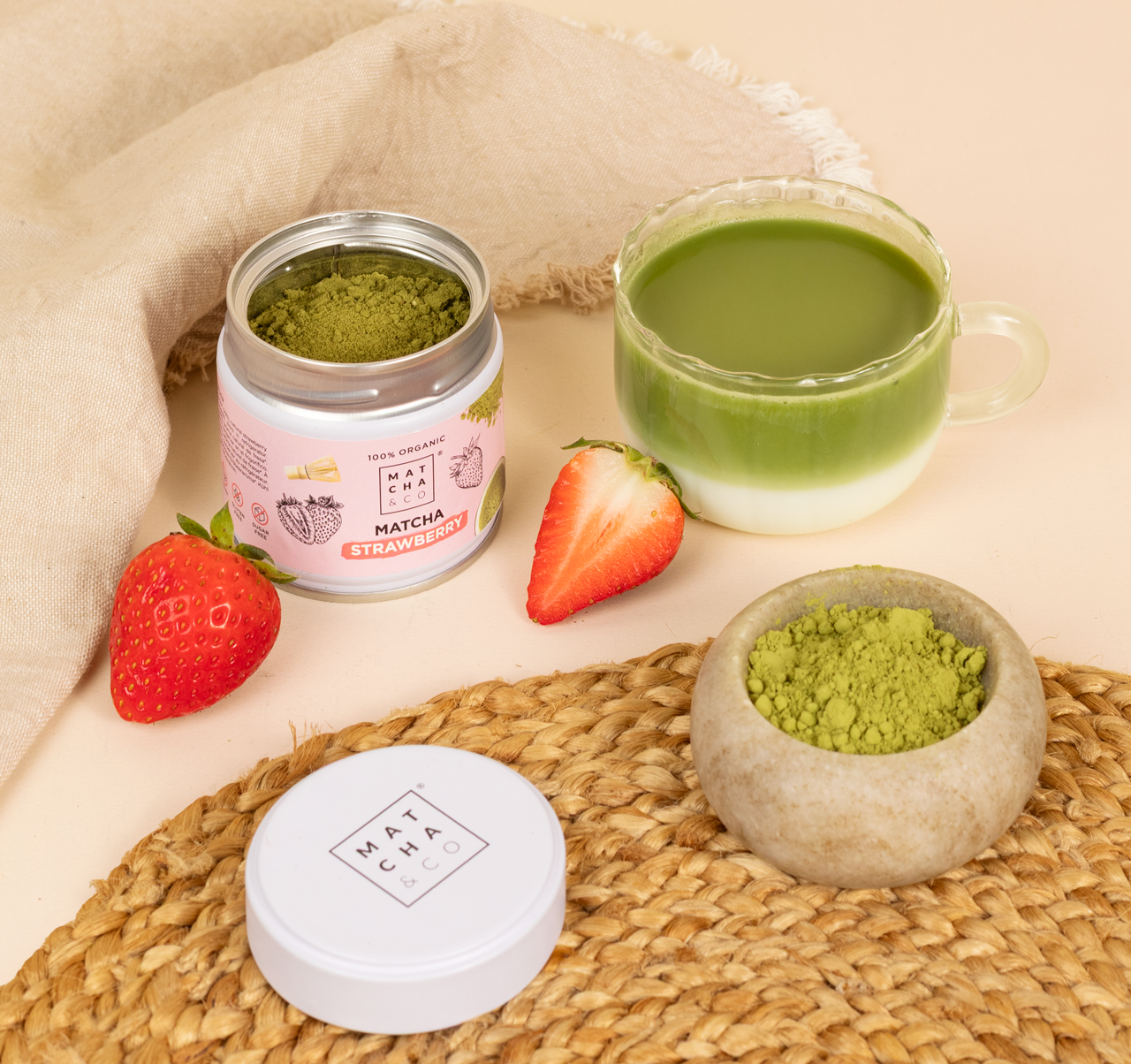 Una mezcla perfecta de fresa orgánica para quienes se inician en el matcha.